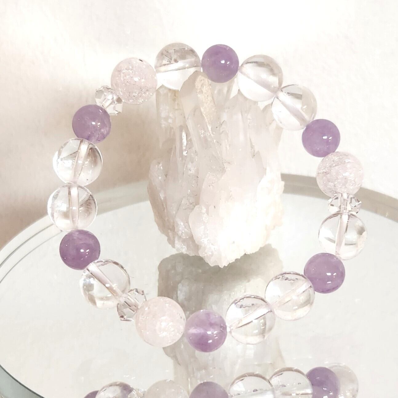 *ラベンダーアメジスト…このクリスタルは、心に安らぎをもたらし、ストレスを軽減する力がある石として知られています。その優しい紫色は、内なる平和を促進し、心を明るく保つサポートをします。リラックスした状態で自分を見つめ直すための大切なパートナーです。