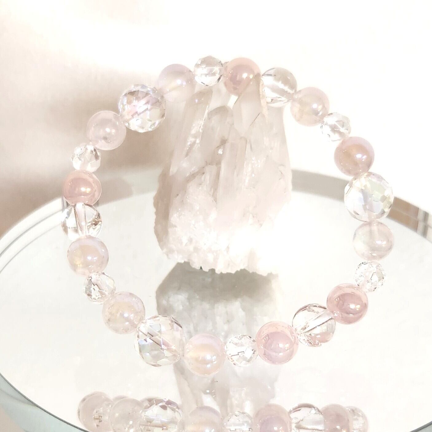 *エンジェルオーラダイヤカット…このクリスタルは、愛と光のエネルギーを持ち、ポジティブな思考を促進する力があります。美しい輝きが持つ人の周りに明るさを与え、心の中の夢に向かうエネルギーを強化します。