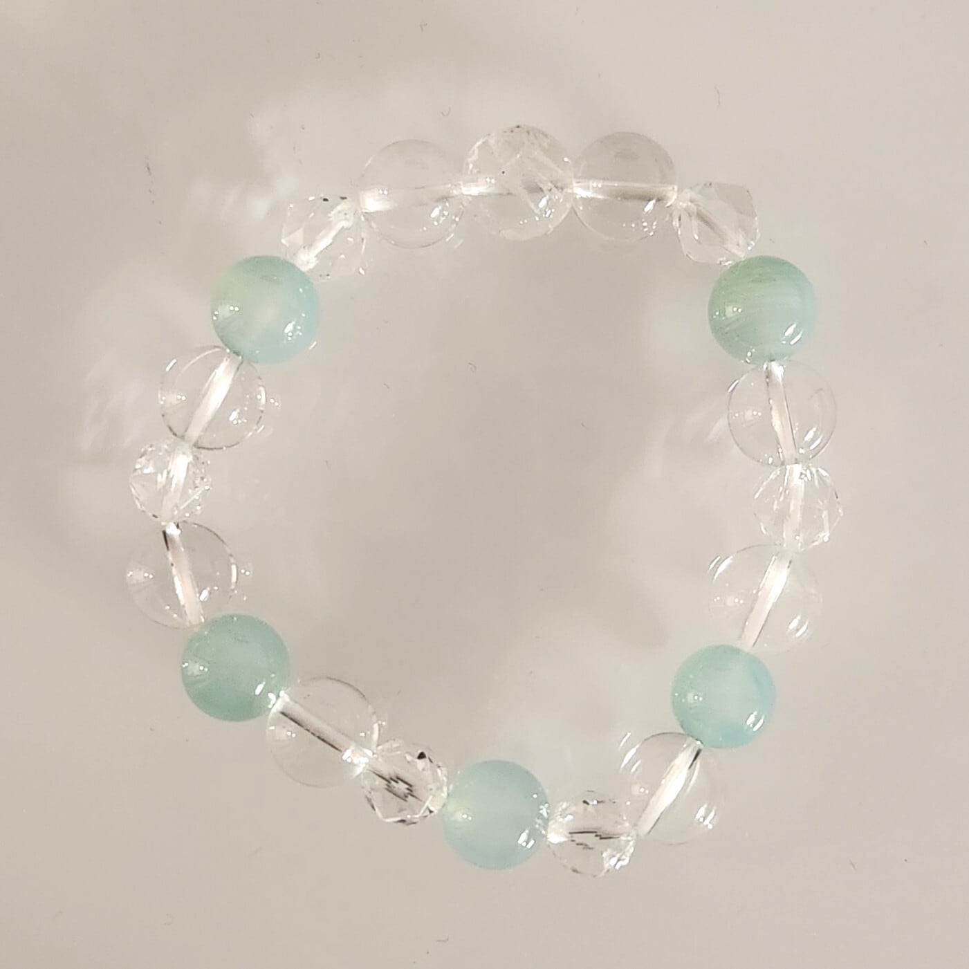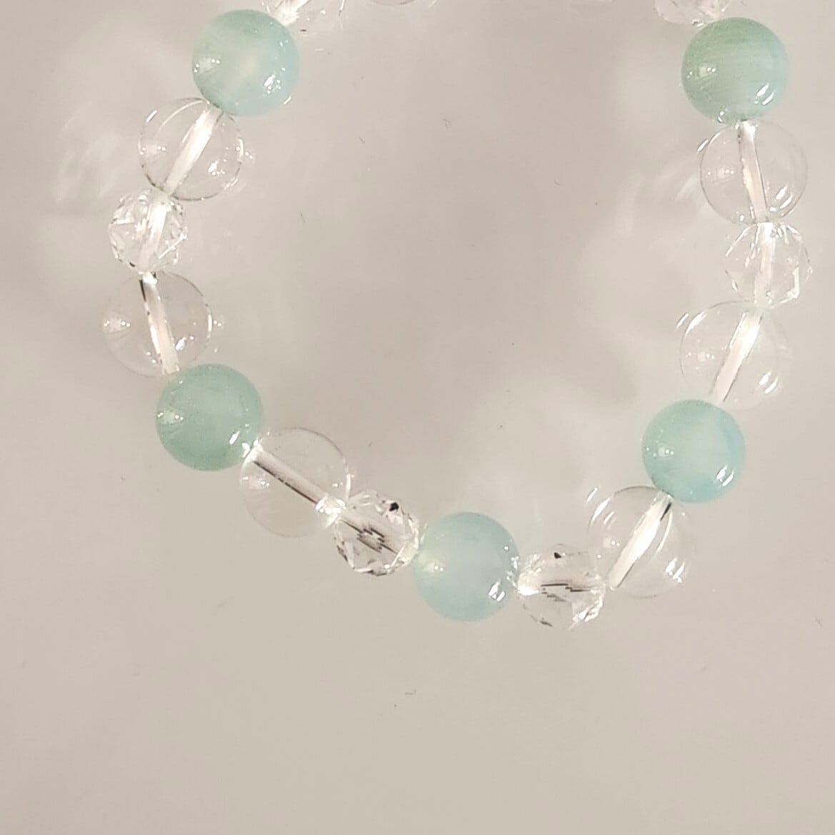 ♦シーブルーカルセドニーは、心を穏やかにし、コミュニケーションを円滑にする効果があるストーンです。この石によって、アイデアをクリアに伝える力が強化され、クリエイティブな活動に翼を与えてくれるでしょう。柔らかい色合いがリラックスをもたらし、心を広げる助けになります。