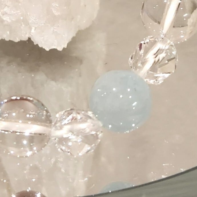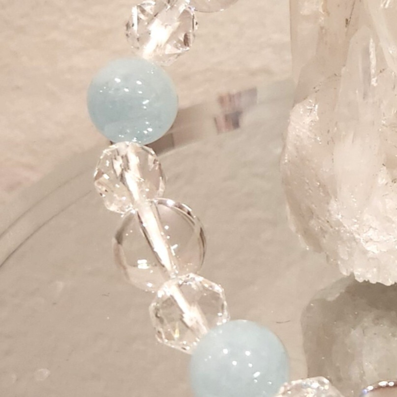 ♦アクアマリンは、心の安らぎを促し、ストレスを和らげる石です。クリアなブルーの色合いが心を落ち着け、冷静な判断力を育ててくれることでしょう。困難な時にも、柔らかなエネルギーがあなたを包み込み、平和な気持ちをもたらします。