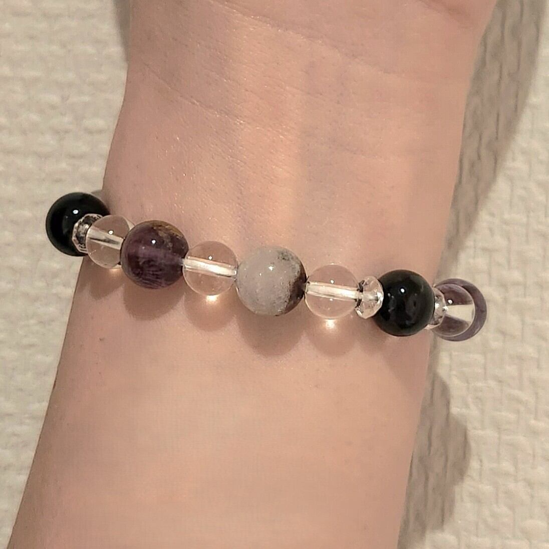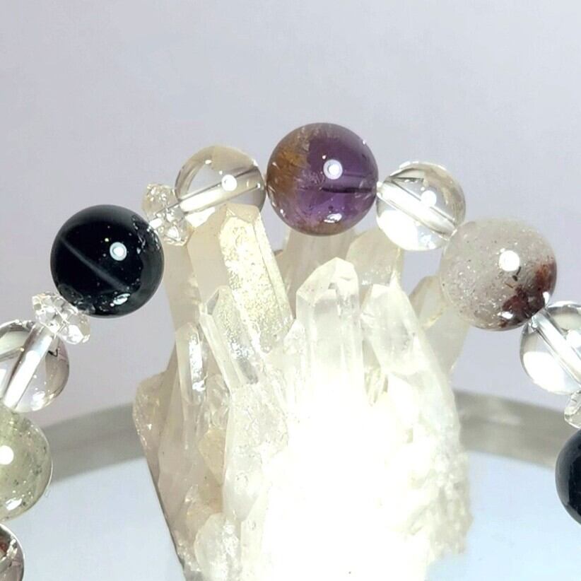 ♦この特別なストーンチャームは、アメジストガーデンファントム、ガーデンクオーツ、タイガーアイ漆黒、水晶を使用しており、持つ人に内なる力を引き出すサポートをするアイテムです。洗練されたデザインと深いエネルギーが、あなたの日常に豊かさをもたらし、心を穏やかに保つ助けとなります。