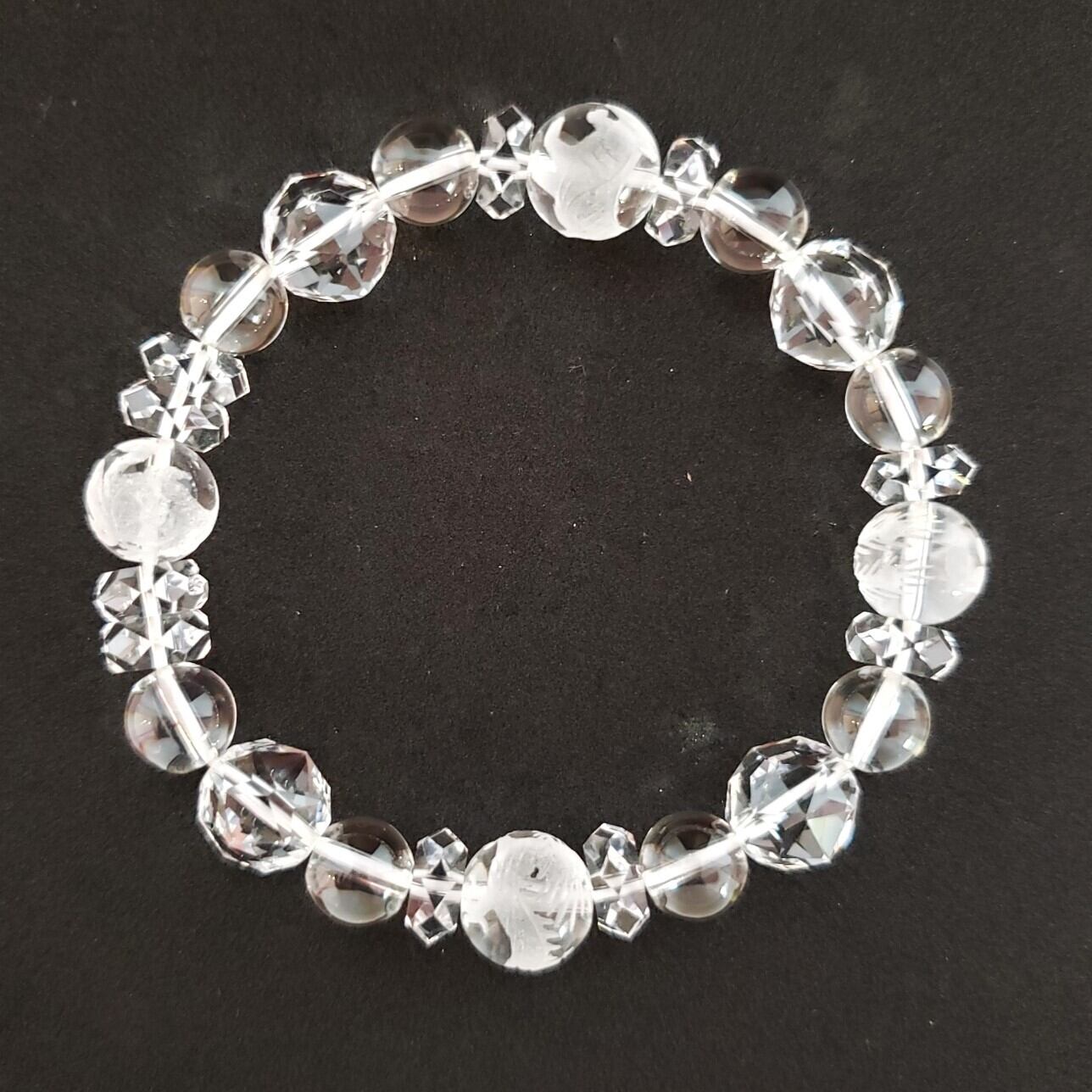 四神獣パワーストーンブレスは、水晶に守護神の絵が彫られています。